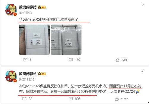 让我们来看看华为X6的价格和发布时间。据悉,华为X6的价格预计在4000元左右,这个价格对于一款旗舰手机来说,可以说是非常亲民了。至于发布时间,华为官方尚未公布,但据业内人士透露,华为X6有望在今年的第三季度与我们见面。